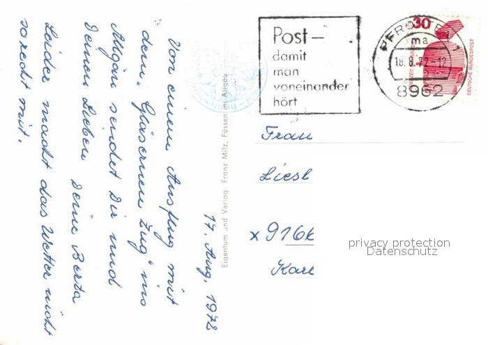 72641456 alte Postkarte Pfronten Ostallgaeu Bayern Panorama Zugspitze Wettersteingebirge Breitenbergbahn Sorgschrofen Rossberg Schwimmbad Aggenstein postalisch gelaufen Erhaltung siehe scans [FriedD77] KatCode: 11110009777159