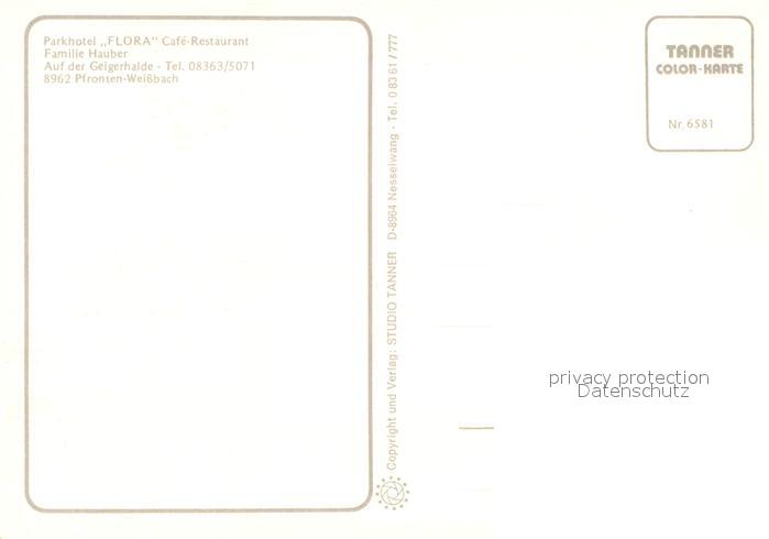 73668629 Pfronten Ostallgaeu Bayern Parkhotel Flora Restaurant postalisch nicht gelaufen Erhaltung siehe scans [LiesaD40] KatCode: 11110009777159