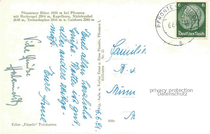 74150500 alte Postkarte Pfronten Ostallgaeu Bayern Pfrontener Huette Allgaeuer Alpen postalisch gelaufen Erhaltung siehe scans [FriedD77] KatCode: 11110009777159