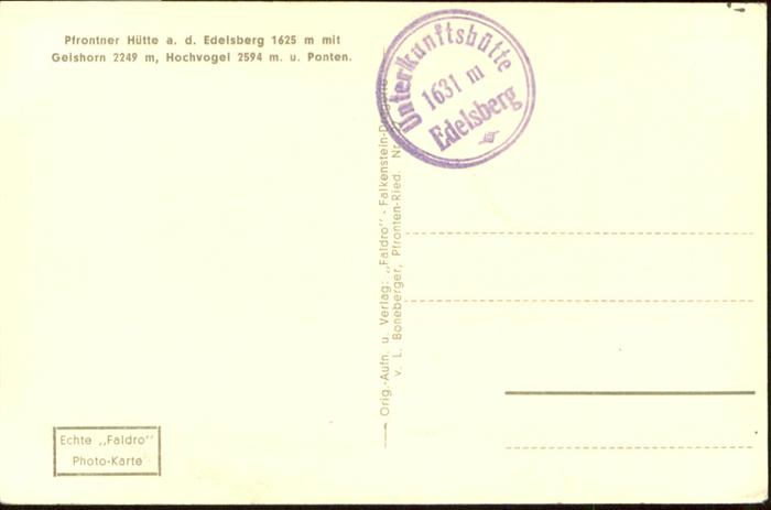 41021868 Pfronten Ostallgaeu Bayern Pfrontner Huette a.d. Edelberg postalisch nicht gelaufen Alte Ansichtskarte Postkarte Katcode 11110009777159