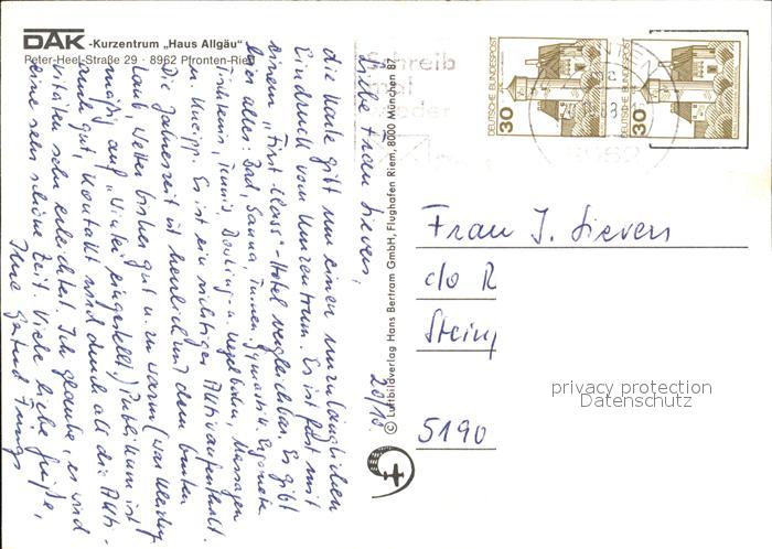 72481061 alte Postkarte Pfronten Ostallgaeu Bayern Ried DAK Kurzentrum Haus Allgaeu postalisch gelaufen Erhaltung siehe scans KatCode: 11110009777159
