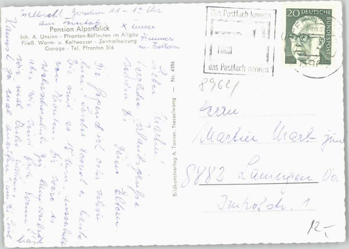 40247005 Pfronten Ostallgaeu Bayern Roefleuten Pension Alpenblick postalisch gelaufen Alte Ansichtskarte Postkarte alte Postkarte Katcode 11110009777159