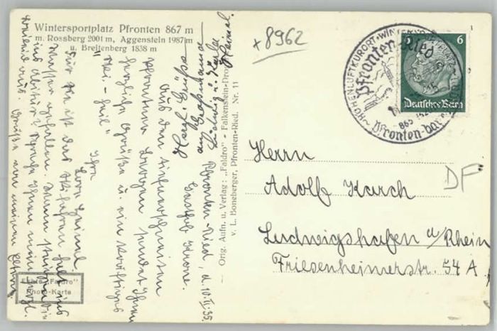 40246585 Pfronten Ostallgaeu Bayern Rossberg Aggenstein postalisch gelaufen Alte Ansichtskarte Postkarte alte Postkarte Katcode 11110009777159