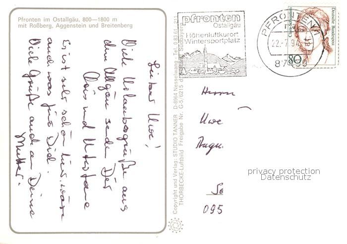 72974189 alte Postkarte Pfronten Ostallgaeu Bayern Rossberg Aggenstein Breitenberg postalisch gelaufen Erhaltung siehe scans [PaolaD17] KatCode: 11110009777159