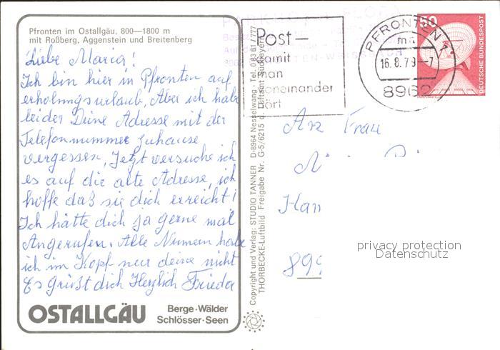 72024300 alte Postkarte Pfronten Ostallgaeu Bayern Rossberg Aggenstein Breitenberg Fliegeraufnahme postalisch gelaufen Erhaltung siehe scans KatCode: 11110009777159