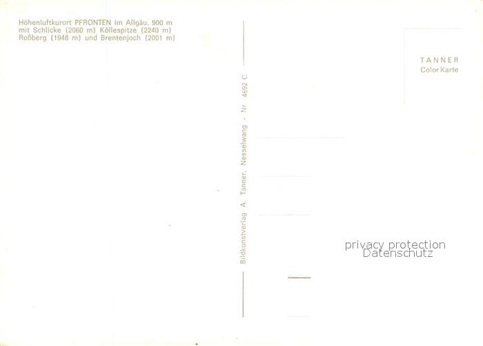 73312116 Pfronten Ostallgaeu Bayern Schlicke Koellespitze Rossberg postalisch nicht gelaufen Erhaltung siehe scans [NatalD47] KatCode: 11110009777159