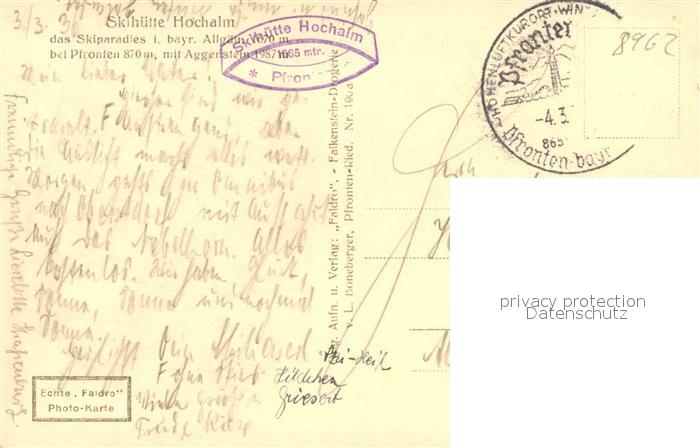 43352138 Pfronten Ostallgaeu Bayern Skihuette Hochalm mit Aggenstein postalisch gelaufen Erhaltung siehe scans [WerneD78] alte Postkarte Wern Katcode 11110009777159