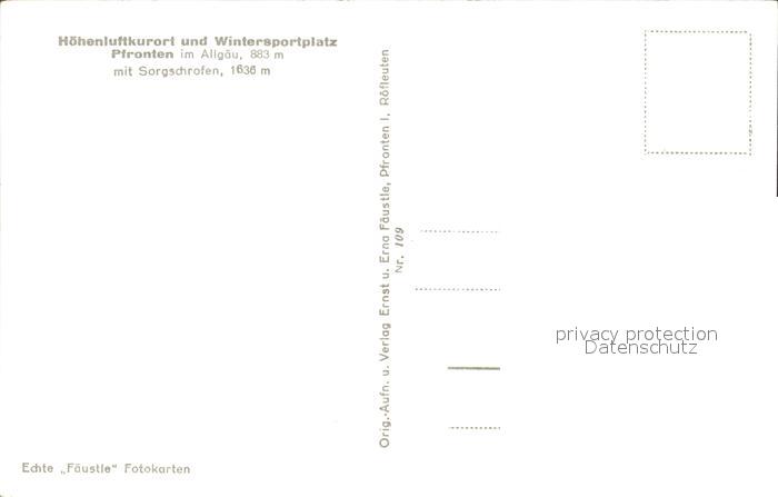 72505608 Pfronten Ostallgaeu Bayern Sorgschrofen postalisch nicht gelaufen Erhaltung siehe scans KatCode: 11110009777159