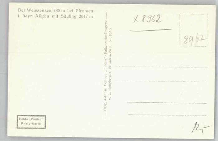 40246626 Pfronten Ostallgaeu Bayern Weissensee Postalisch nicht gelaufen Alte Ansichtskarte Postkarte Katcode 11110009777159
