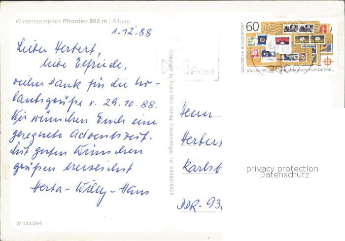 72368244 alte Postkarte Pfronten Ostallgaeu Bayern Wintersportplatz Langlauf Alpin Kirche postalisch gelaufen Erhaltung siehe scans KatCode: 11110009777159