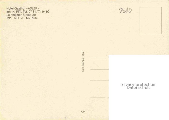 74049903 Pfuhl Neu-Ulm Hotel Gasthof Adler postalisch nicht gelaufen Erhaltung siehe scans [FriedD77] KatCode: 11110009775135