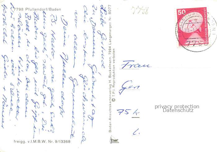 74104294 alte Postkarte Pfullendorf Sigmaringen BW Panorama mit Alpenkette postalisch gelaufen Fliegeraufnahme Erhaltung siehe scans [FriedD77] KatCode: 11110008437088