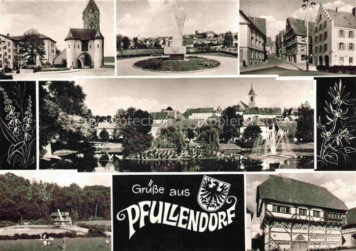 Pfullendorf Sigmaringen BW Stadttor Brunnen Strasse Panorama Schwimmbad Fachwerkhaus postalisch nicht gelaufen Erhaltung siehe scans [WerneD78] Wern Katcode 11110008437088