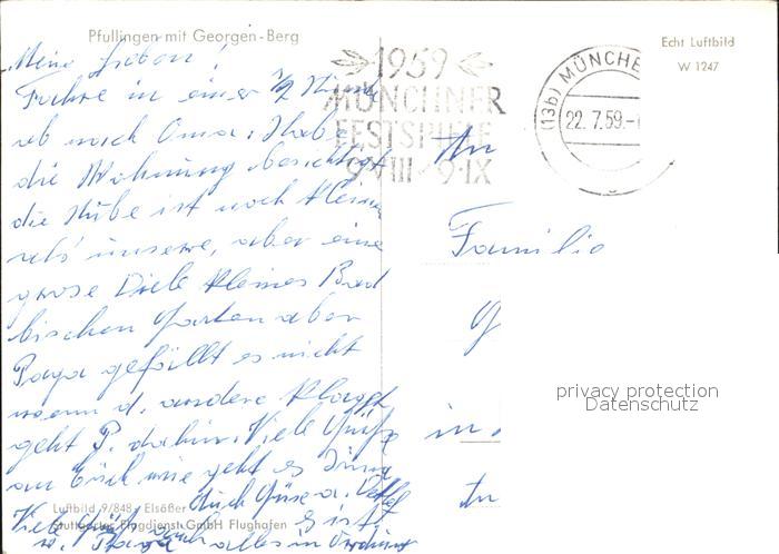 72478079 alte Postkarte Pfullingen Fliegeraufnahme mit Georgen Berg postalisch gelaufen Erhaltung siehe scans KatCode: 11110008415059