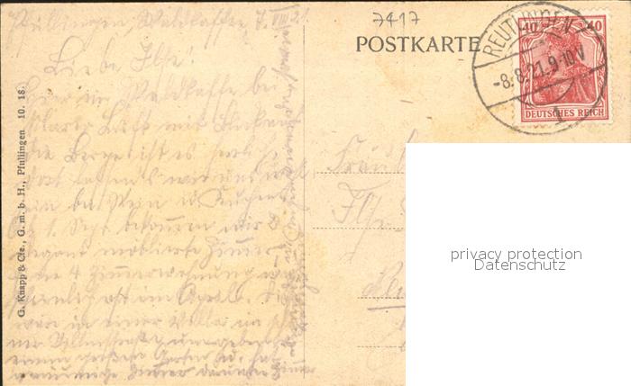 32158804 alte Postkarte Pfullingen Wald- Cafe postalisch gelaufen Erhaltung siehe scans KatCode: 11110008415059