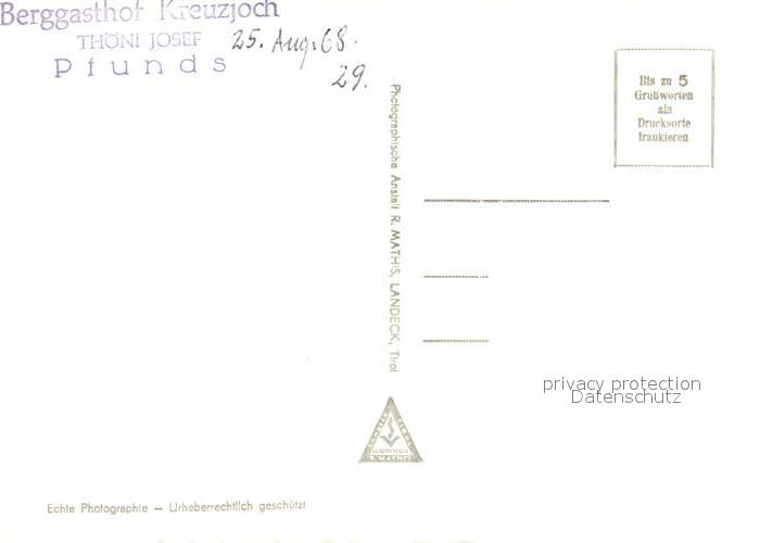 43202653 Pfunds Berggasthof Kreuzjoch Alpen postalisch nicht gelaufen Erhaltung siehe scans [FriedD77] KatCode: 11390334070617