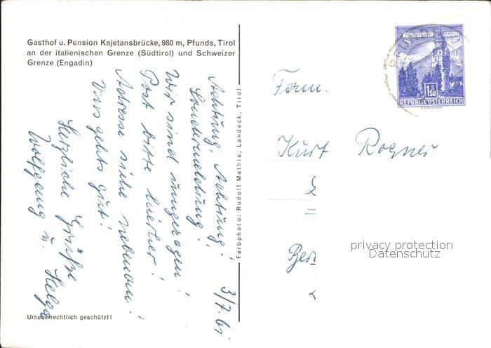 12010897 alte Postkarte Pfunds Gasthaus Pension Kajetansbruecke postalisch gelaufen Erhaltung siehe scans KatCode: 11390334070617