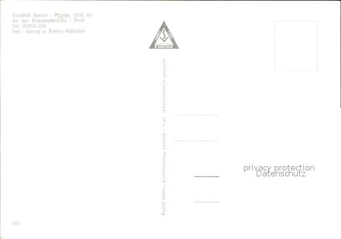 72490537 Pfunds Gasthof Sonne postalisch nicht gelaufen Erhaltung siehe scans KatCode: 11390334070617