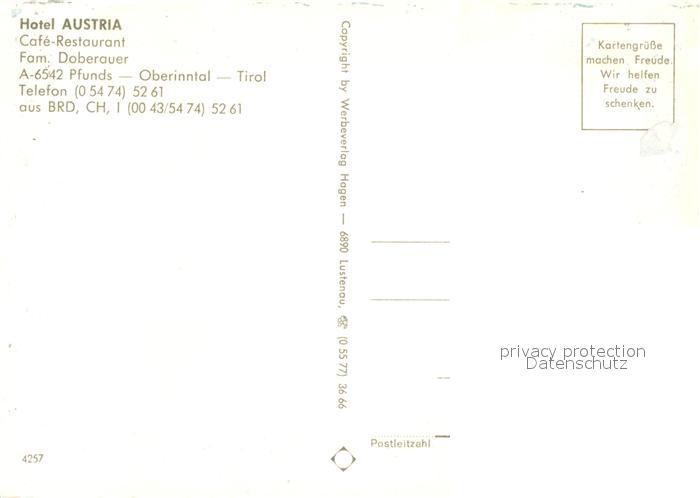 73588103 Pfunds Hotel Austria postalisch nicht gelaufen Erhaltung siehe scans [PaolaD17] KatCode: 11390334070617