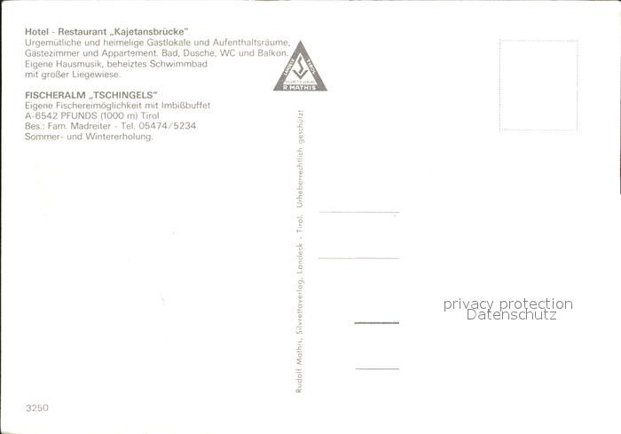 72485416 Pfunds Hotel Kajetansbruecke Fischeralm postalisch nicht gelaufen Erhaltung siehe scans KatCode: 11390334070617