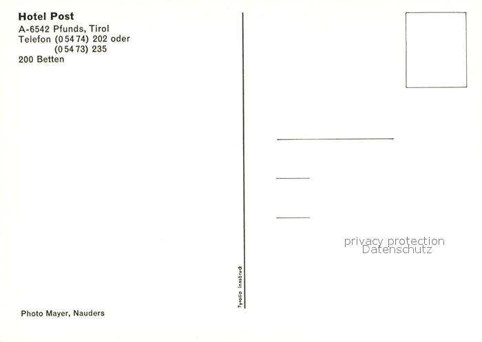 73034329 Pfunds Hotel Post postalisch nicht gelaufen Erhaltung siehe scans [PaolaD17] KatCode: 11390334070617