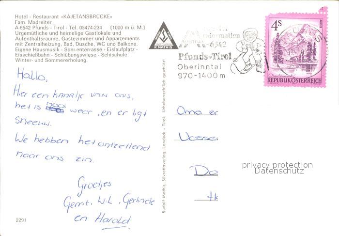 71914746 alte Postkarte Pfunds Hotel Restaurant Kajetansbruecke postalisch gelaufen KatCode: 11390334070617