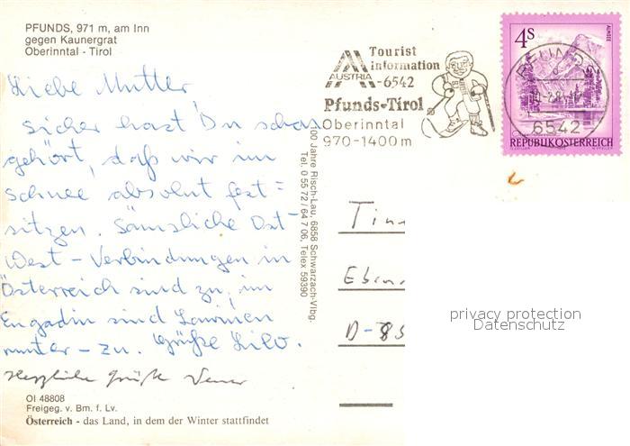73531738 alte Postkarte Pfunds Panorama Oberinntal Blick gegen Kaunergrat Fliegeraufnahme postalisch gelaufen Erhaltung siehe scans [FriedD77] KatCode: 11390334070617