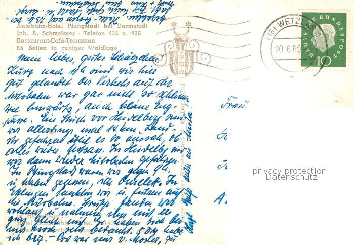 73129427 alte Postkarte Pfungstadt Autobahn-Hotel postalisch gelaufen Erhaltung siehe scans [PaolaD17] KatCode: 11110006432018