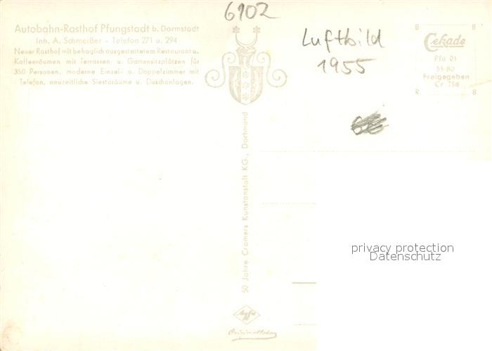73749553 Pfungstadt Autobahn Rasthof Pfungstadt Fliegeraufnahme postalisch nicht gelaufen Erhaltung siehe scans [WerneD78] KatCode: 11110006432018