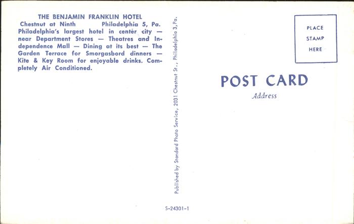 Philadelphia Pennsylvania Benjamin Franklin Hotel Kuenstlerkarte