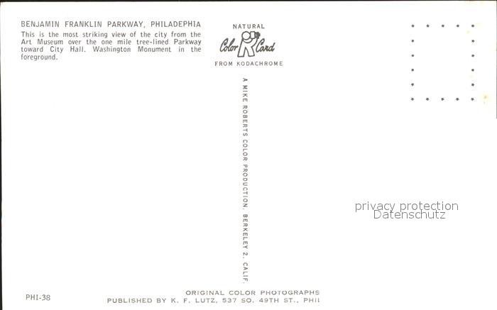 72349000 Philadelphia Pennsylvania Benjamin Franklin Parkway postalisch nicht gelaufen Erhaltung siehe scans KatCode: 14140410000000