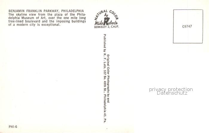 72944730 Philadelphia Pennsylvania Benjamin Franklin Parkway postalisch nicht gelaufen Erhaltung siehe scans [WerneD78] KatCode: 14140410000000