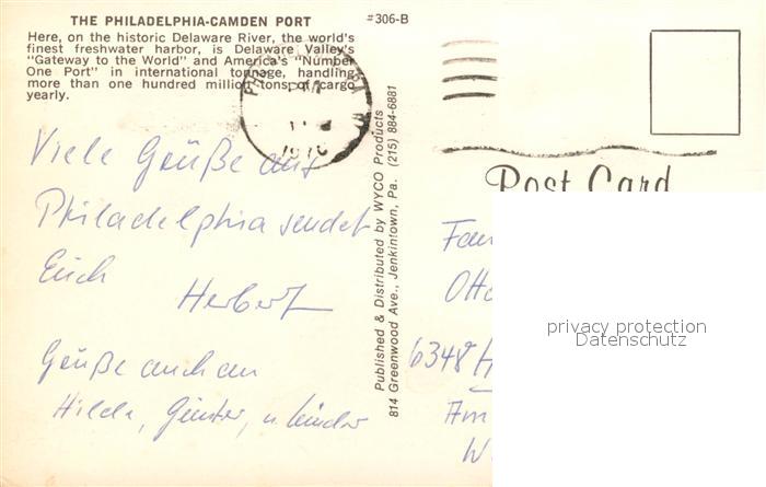 73212593 old postcard Philadelphia Pennsylvania Camden Port Delaware River aerial view postalisch gelaufen Erhaltung siehe scans [FriedD77] KatCode: 14140410000000