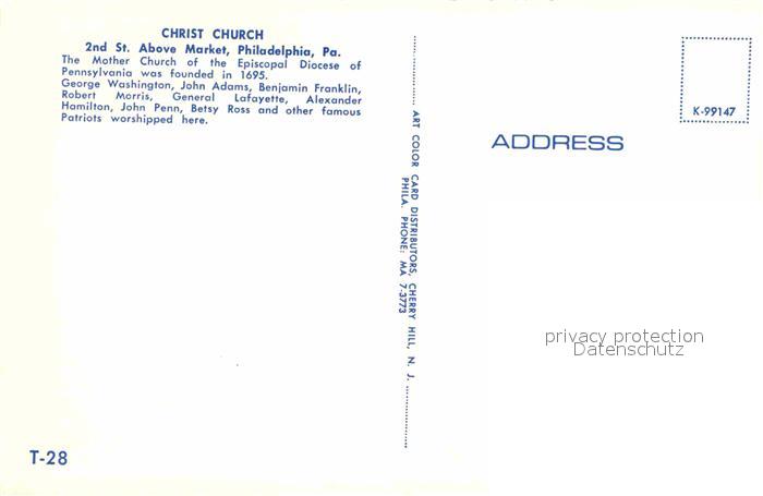 72848289 Philadelphia Pennsylvania Christ church postalisch nicht gelaufen Erhaltung siehe scans [KathaD81] KatCode: 14140410000000