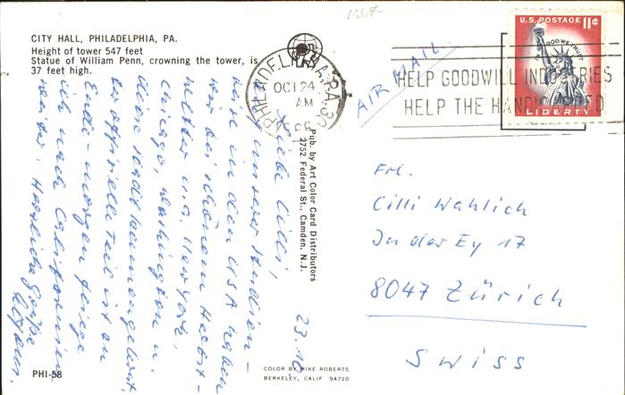 11491834 old postcard Philadelphia Pennsylvania City Hall Statue of William Penn postalisch gelaufen Erhaltung siehe scans KatCode: 14140410000000