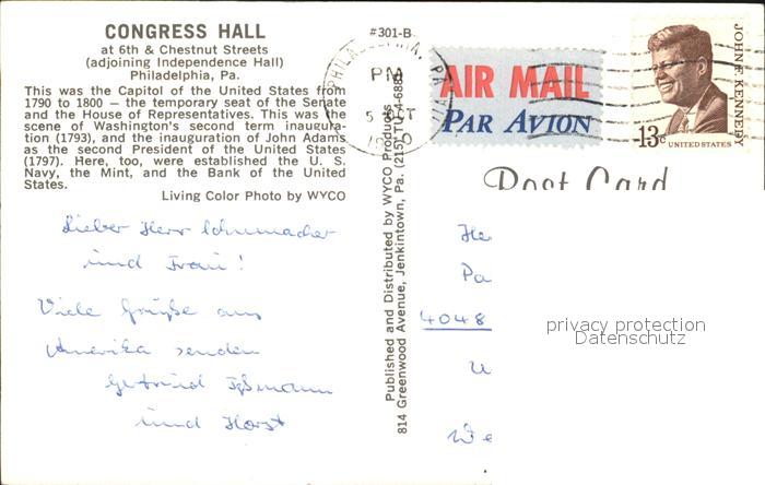 72605538 old postcard Philadelphia Pennsylvania Concress Hall postalisch gelaufen Erhaltung siehe scans [AndreD76] KatCode: 14140410000000