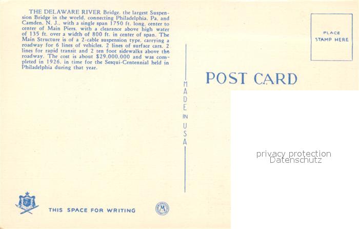 43099633 Philadelphia Pennsylvania Delaware River Bridge postalisch nicht gelaufen Erhaltung siehe scans [FriedD77] KatCode: 14140410000000