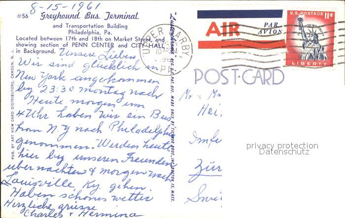 71940957 old postcard Philadelphia Pennsylvania Greyhound Bus Terminal Transportation Building postalisch gelaufen Erhaltung siehe scans KatCode: 14140410000000