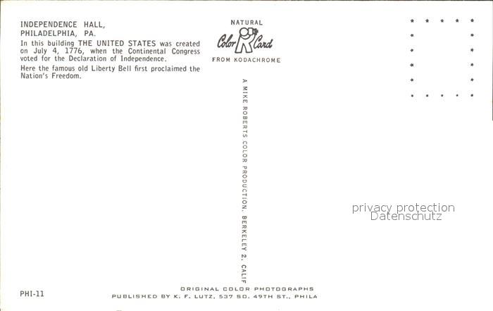 72349002 Philadelphia Pennsylvania Independence Hall postalisch nicht gelaufen Erhaltung siehe scans KatCode: 14140410000000