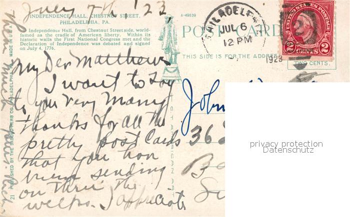 13323455 old postcard Philadelphia Pennsylvania Independence Hall Chestnut Street postalisch gelaufen Erhaltung siehe scans [KathaD81] KatCode: 14140410000000
