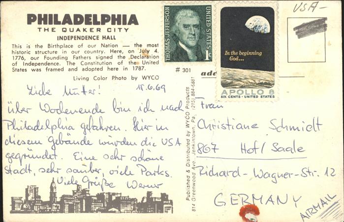 11491851 old postcard Philadelphia Pennsylvania Independence Hall Declaration of Independance Constitution of the United States 1787 postalisch gelaufen Erhaltung siehe scans KatCode: 14140410000000