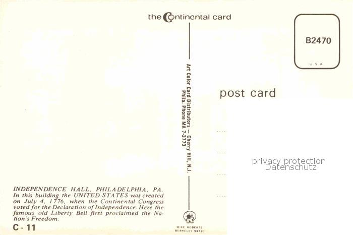 72917768 Philadelphia Pennsylvania Independence Hall postalisch nicht gelaufen Erhaltung siehe scans [LiesaD40] KatCode: 14140410000000
