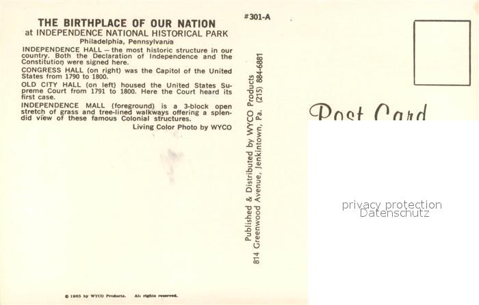 73646809 Philadelphia Pennsylvania Independence National Historical Park postalisch nicht gelaufen Erhaltung siehe scans [WerneD78] KatCode: 14140410000000