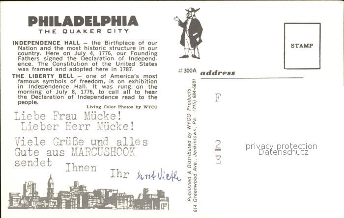72394244 Philadelphia Pennsylvania Interpendence Hall The Liberty Bell postalisch nicht gelaufen Erhaltung siehe scans KatCode: 14140410000000