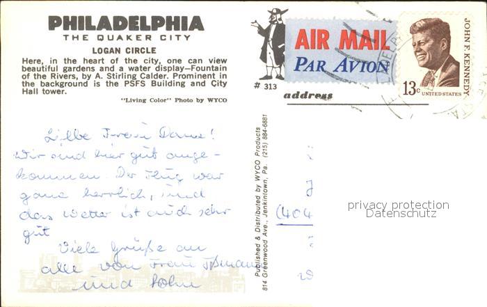 72605537 old postcard Philadelphia Pennsylvania Logan Circle postalisch gelaufen Erhaltung siehe scans [AndreD76] KatCode: 14140410000000