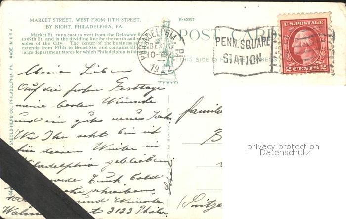 11688657 old postcard Philadelphia Pennsylvania Market Street by night postalisch gelaufen Erhaltung siehe scans KatCode: 14140410000000