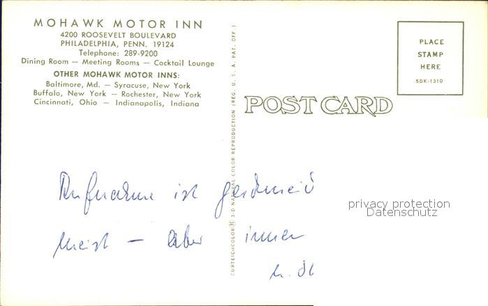72570471 Philadelphia Pennsylvania Mohawk Motor Inn postalisch nicht gelaufen Erhaltung siehe scans [AndreD76] KatCode: 14140410000000