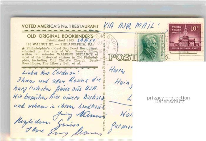 12714237 old postcard Philadelphia Pennsylvania Old Original Bookbinders Walnut St postalisch gelaufen Erhaltung siehe scans [WerneD78] KatCode: 14140410000000