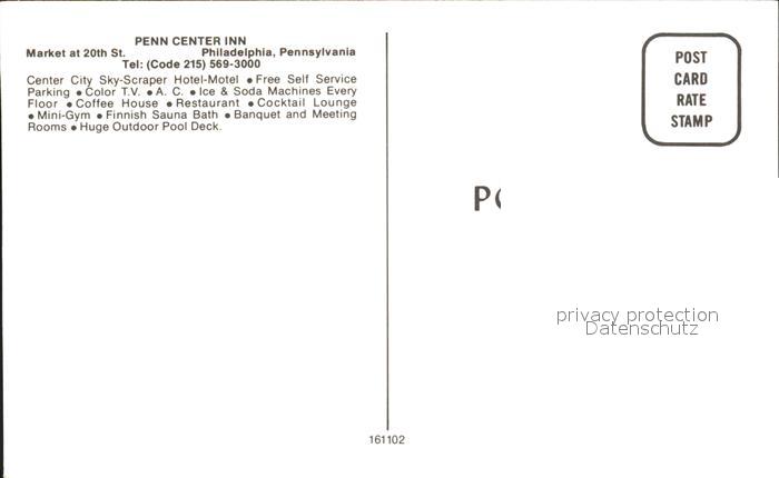 71925879 Philadelphia Pennsylvania Penn Center inn postalisch nicht gelaufen Erhaltung siehe scans KatCode: 14140410000000