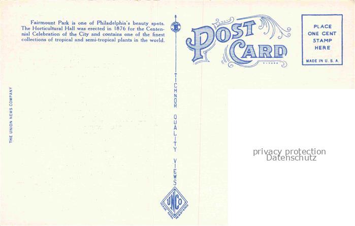 74118031 PHILADELPHIA Pennsylvania USA Fairmount Park The Horticultural Hall postalisch nicht gelaufen Erhaltung siehe scans [WerneD78] KatCode: 14140410000000